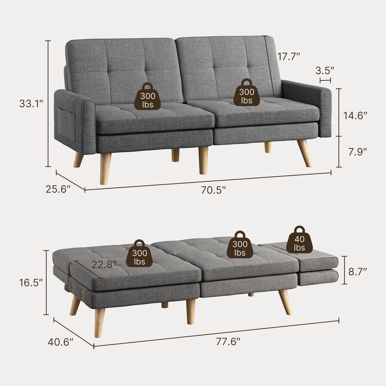 【𝗦𝗺𝗮𝗹𝗹 𝗮𝗻𝗱 𝗖𝗼𝗺𝗽𝗮𝗰𝘁 𝗱𝗲𝘀𝗶𝗴𝗻】The futon sofa can easily fit in your living room, apartment, or office. Sofa size: 25(D) x 70.9(W) × 27.6(H) inch, couch bed size: 38.9(D) × 63(W) × 14.2(H) inch, perfect and comfortable mid-century modern love seat.